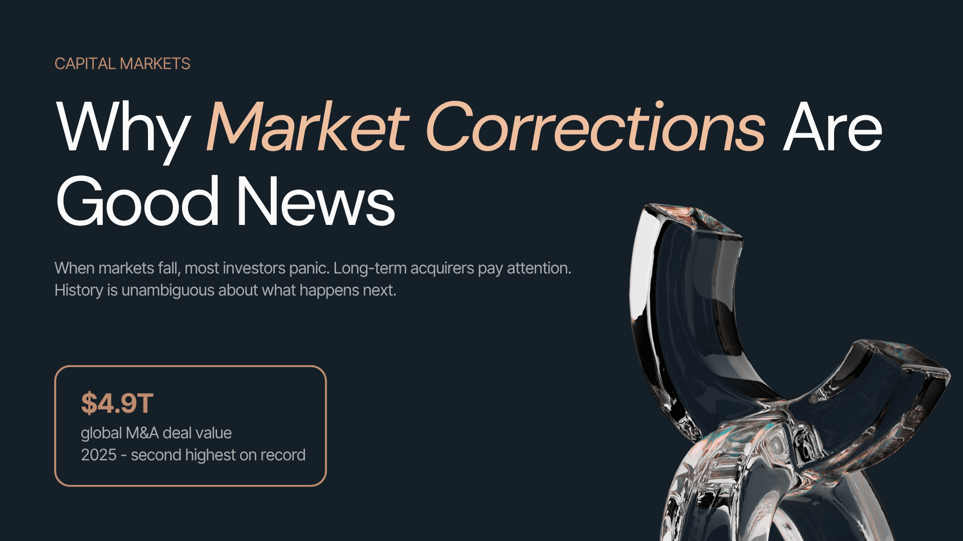 A market correction does not destroy the underlying value of a business. It changes perception. It makes a company with real assets and recurring revenue look like a problem on a screen, and that appearance drives institutional sellers, unsettles management teams, and creates exactly the kind of disconnect that long-term acquirers look for.